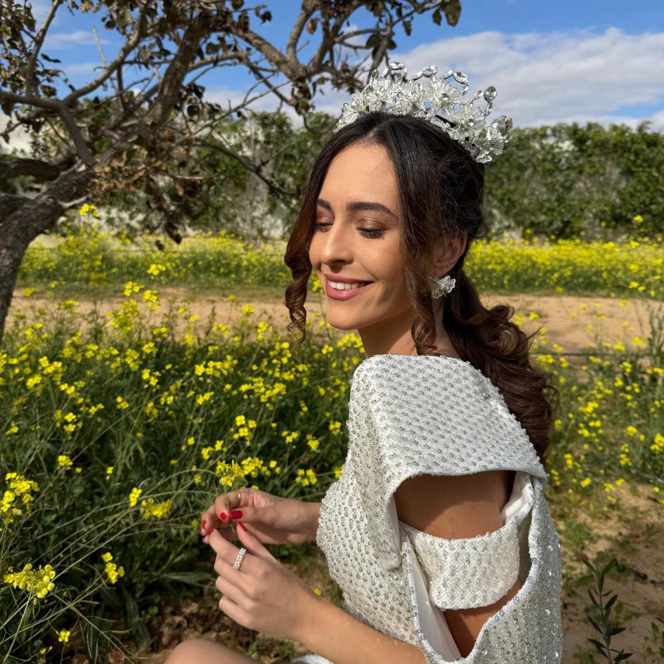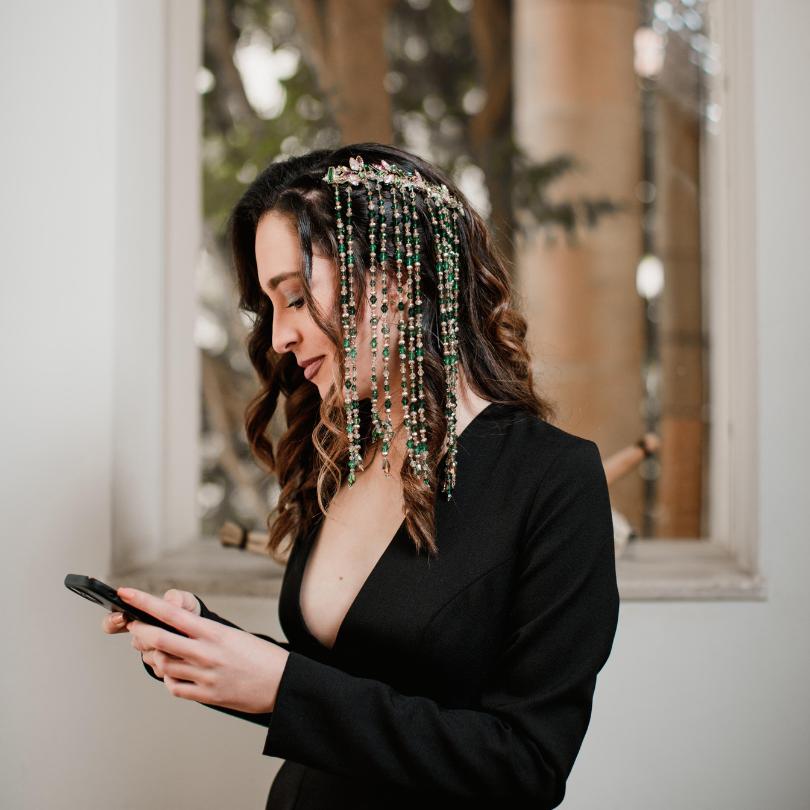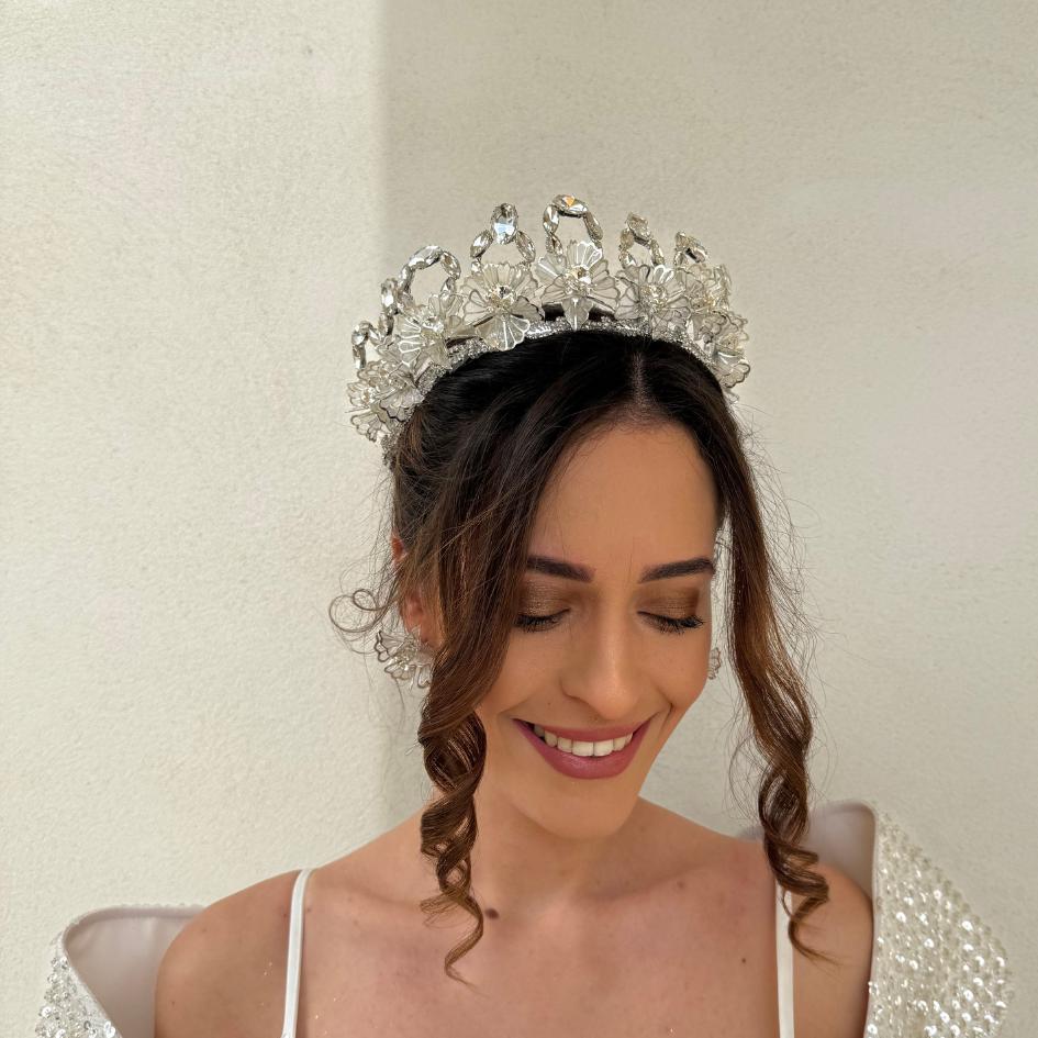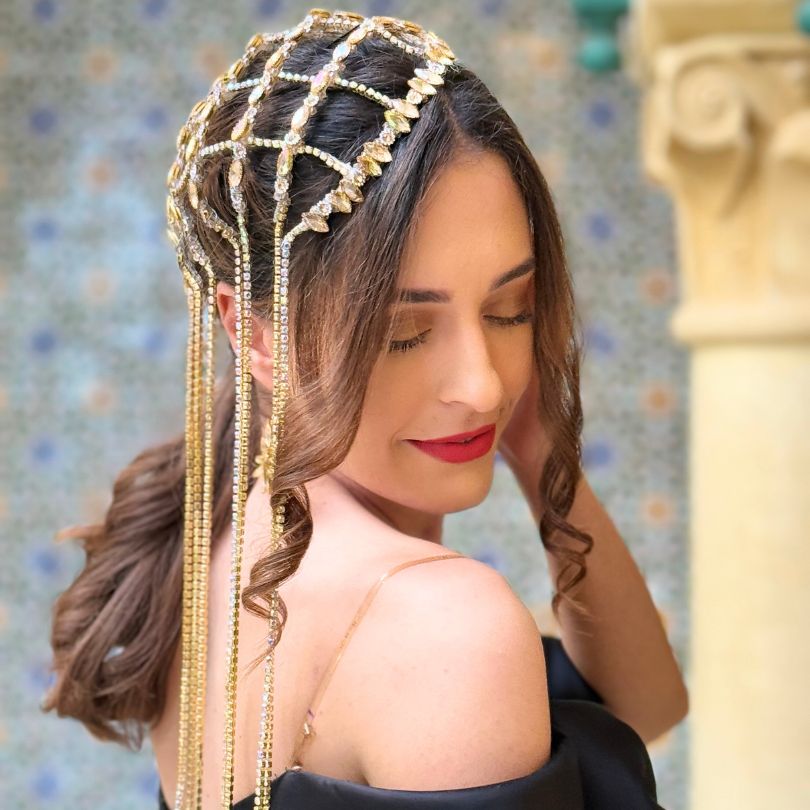 Couronne fleurie en strass doré, bijou de tête glamour pour événement