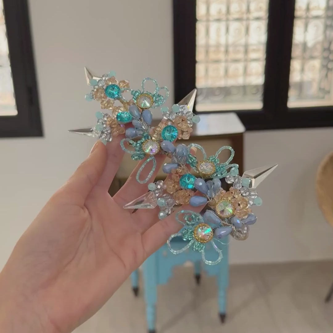 Accessoire cheveux bleu royal – Fleurs et cristaux dorés pour mariée