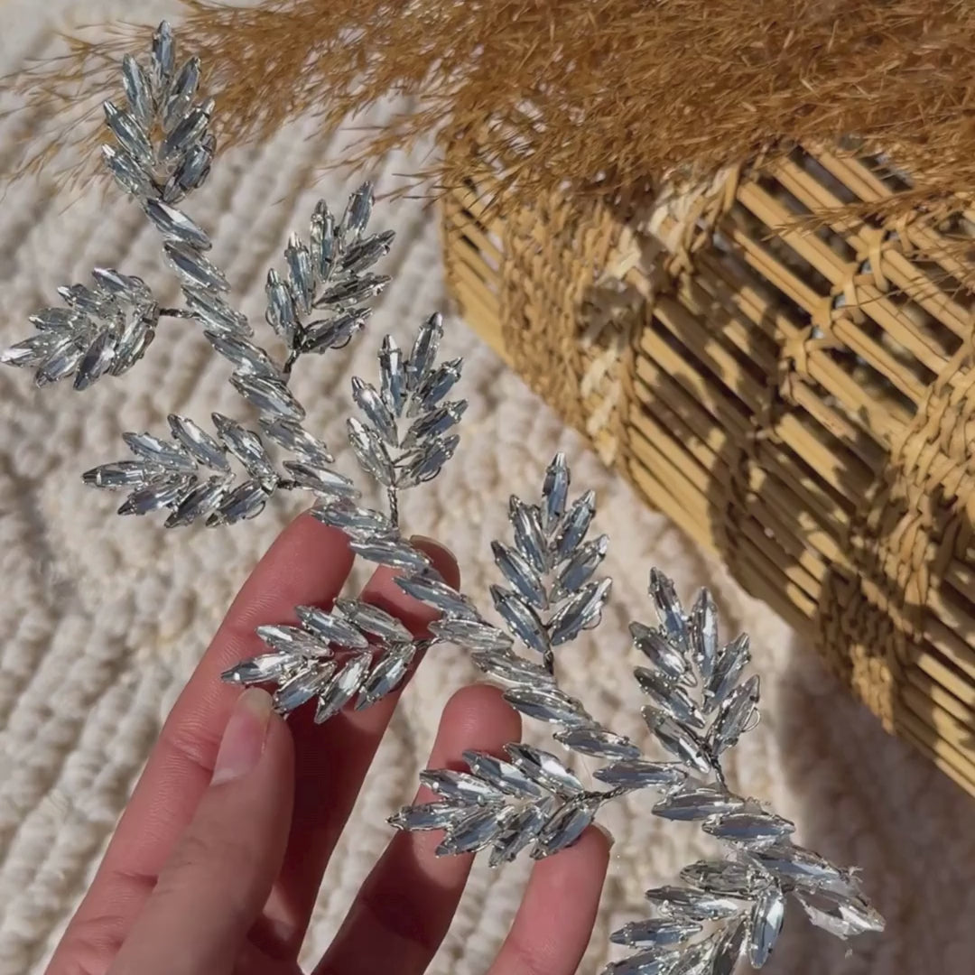 Apportez une touche d’élégance intemporelle à votre coiffure avec ce peigne cheveux orné de cristaux blancs, pensé pour sublimer les looks de mariage et de cérémonie. Son design délicat inspiré de la nature, composé de fines feuilles scintillantes, capte la lumière avec subtilité et illumine votre coiffure sans jamais l’alourdir.