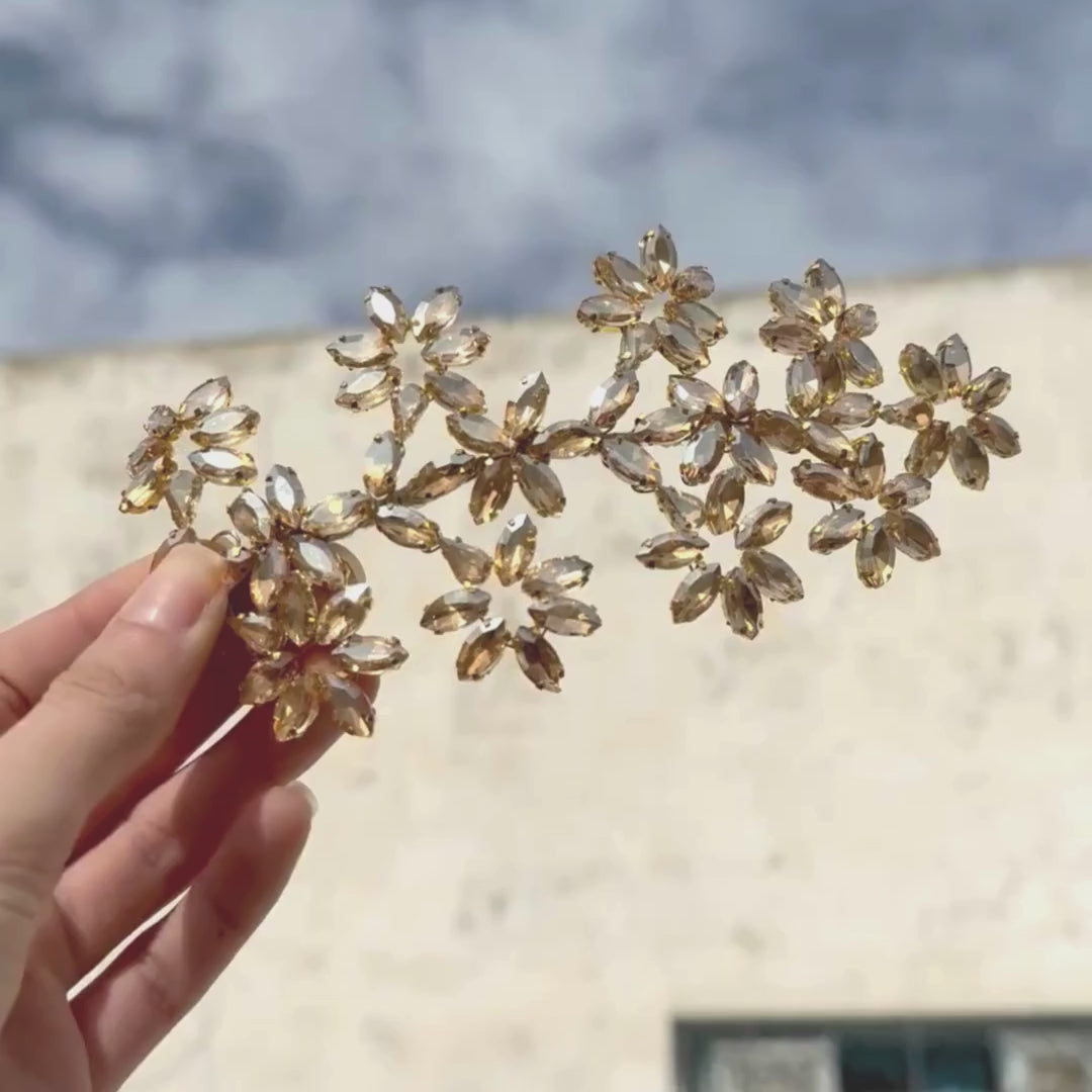 Accessoire de cheveux doré avec cristaux en forme de fleurs