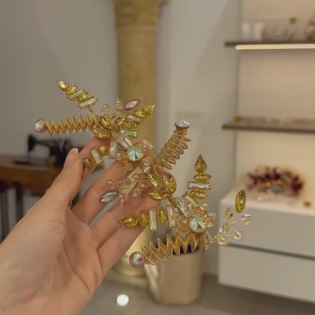 Bijou de cheveux mariage doré et brun – Peigne raffiné pour mariée
