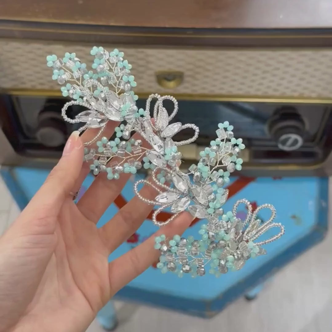 Accessoire de coiffure en cristal et perles Bleu ciel – Idéal pour mariage et cérémonie