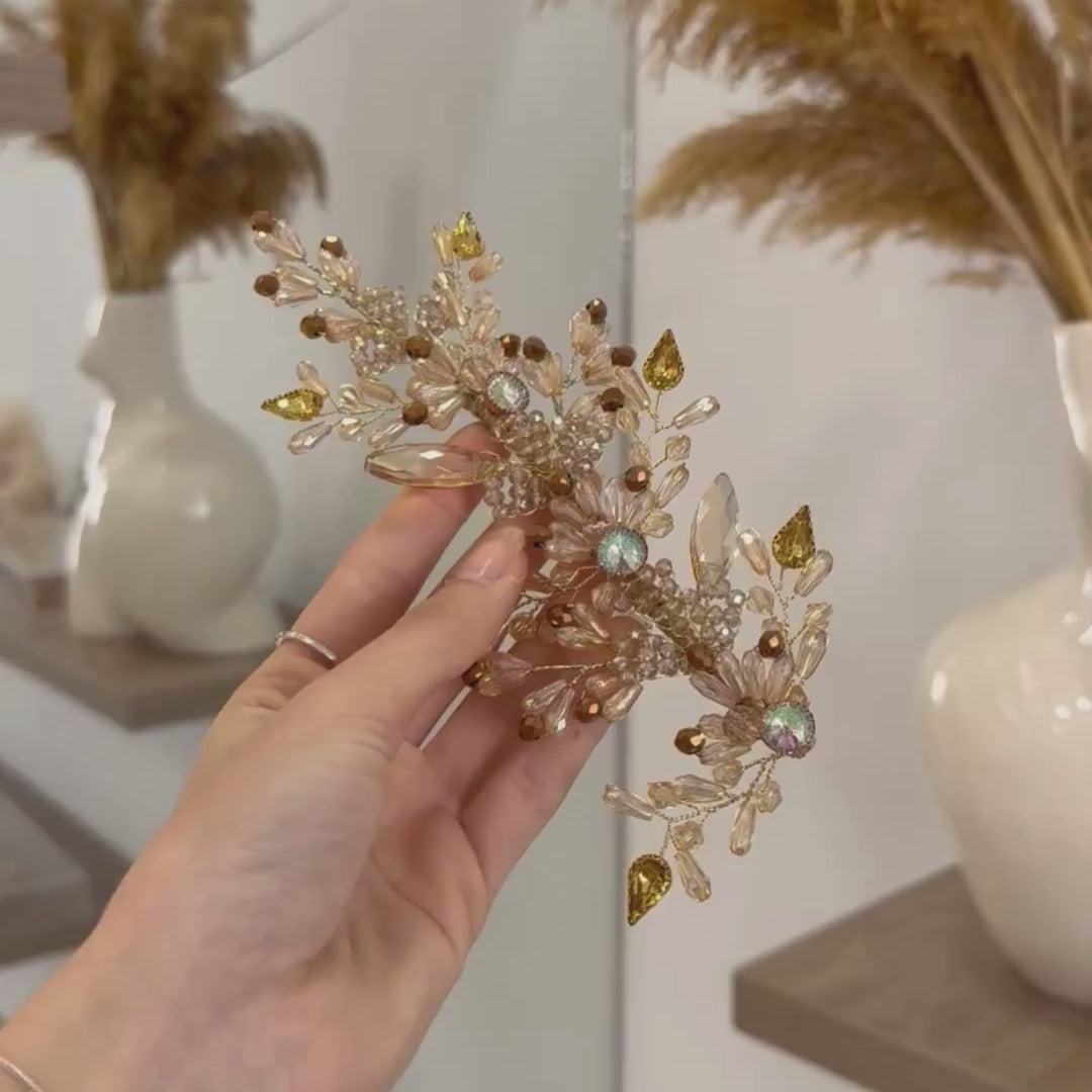 Bijou de tête mariage bohème en cristaux – Accessoire de coiffure chic