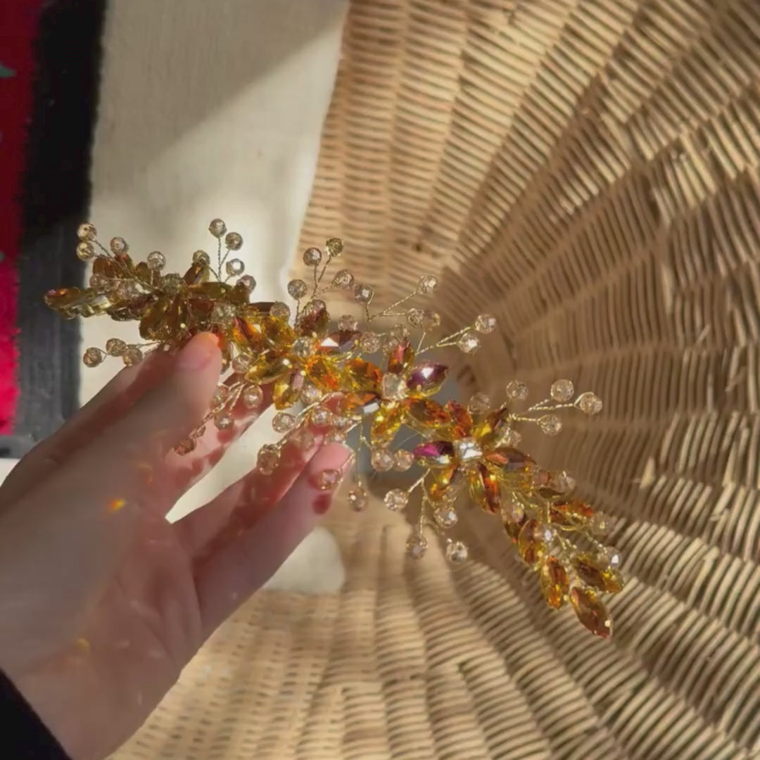 Broche à cheveux fleurs Orange en cristaux