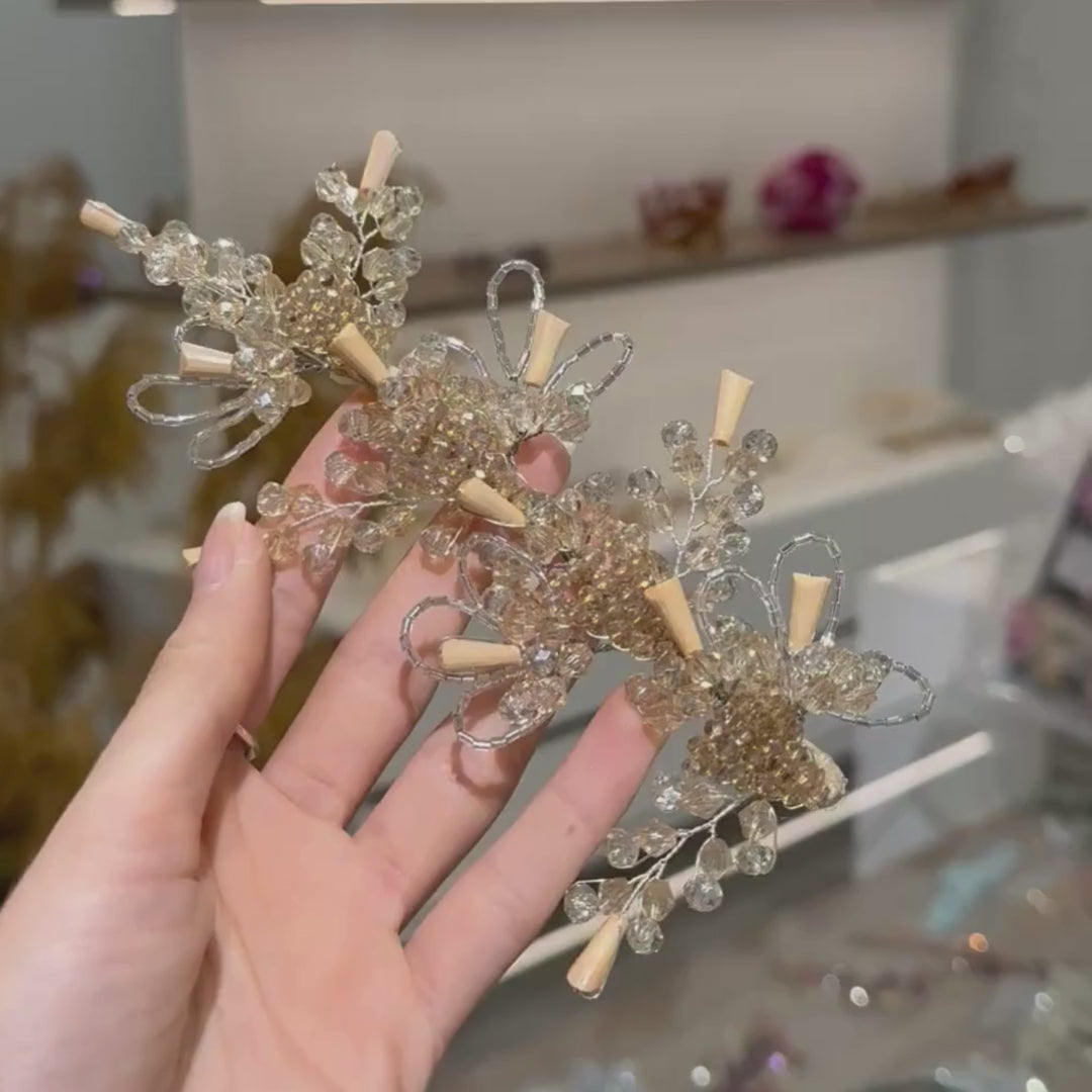 Rehaussez votre tenue avec cette broche artisanale, finement travaillée pour apporter une touche de sophistication à votre mariage ou cérémonie. Ornée de détails raffinés, cette broche s’associe harmonieusement avec une robe, un voile ou une ceinture, ajoutant une note de glamour et de délicatesse à votre look.
