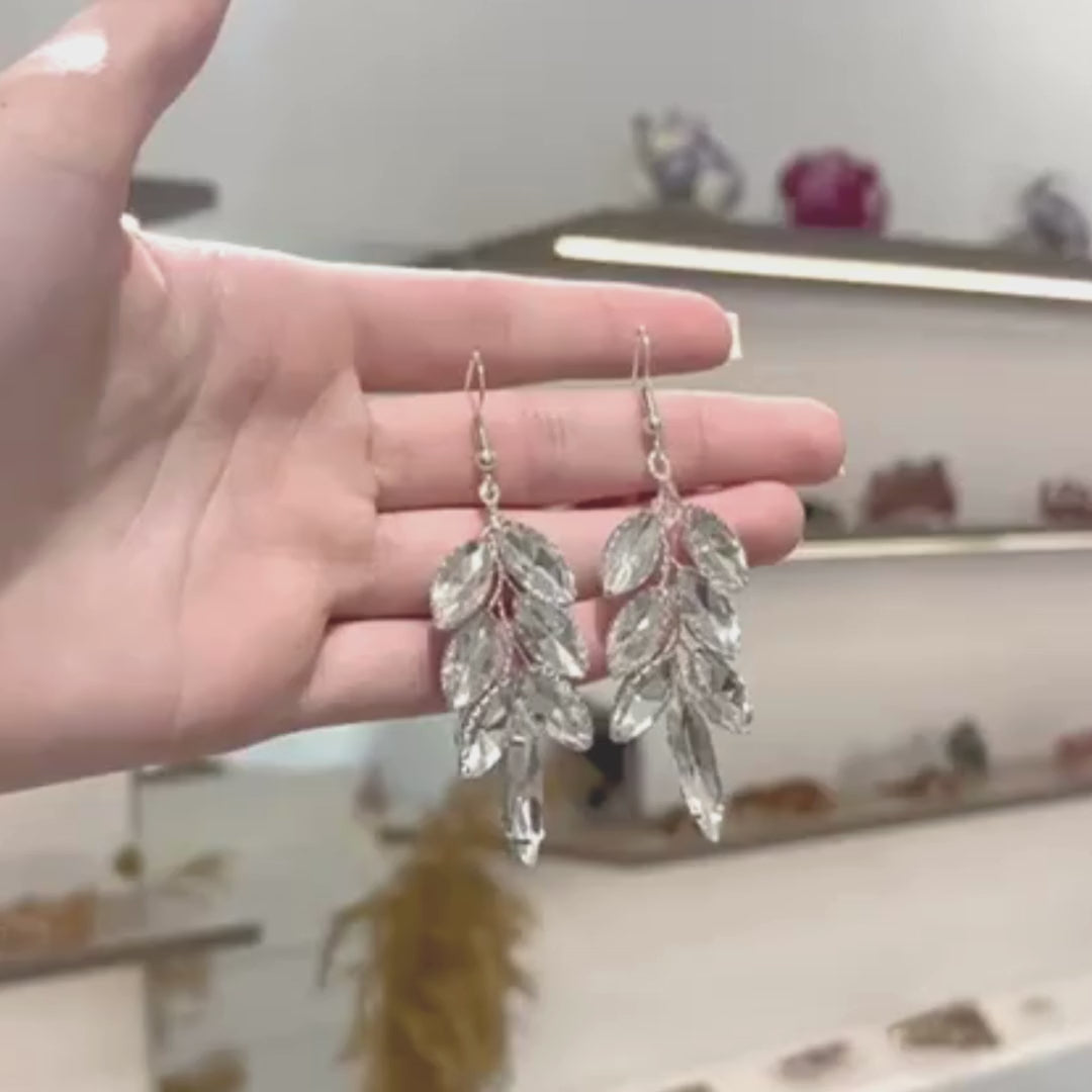 Chaque boucle est ornée de délicates pierres scintillantes ou perles blanches, soigneusement sélectionnées pour leur éclat et leur brillance. Le montage en métal argenté ou doré offre une finition chic et intemporelle, garantissant que ces boucles d'oreilles se distinguent sans voler la vedette à votre robe.