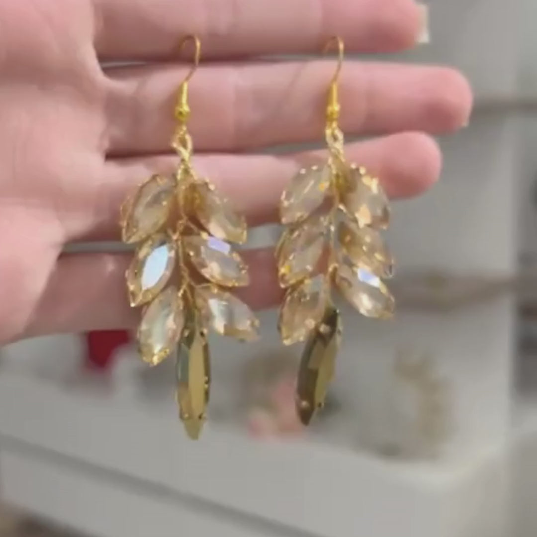Chaque boucle est ornée de délicates pierres scintillantes ou perles blanches, soigneusement sélectionnées pour leur éclat et leur brillance. Le montage en métal argenté ou doré offre une finition chic et intemporelle, garantissant que ces boucles d'oreilles se distinguent sans voler la vedette à votre robe.