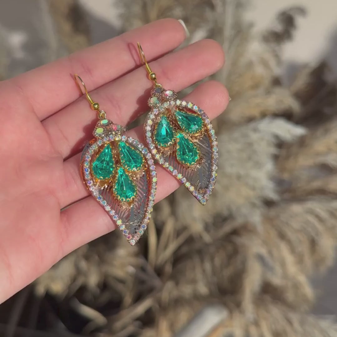 Boucle d'oreille vert forme feuille