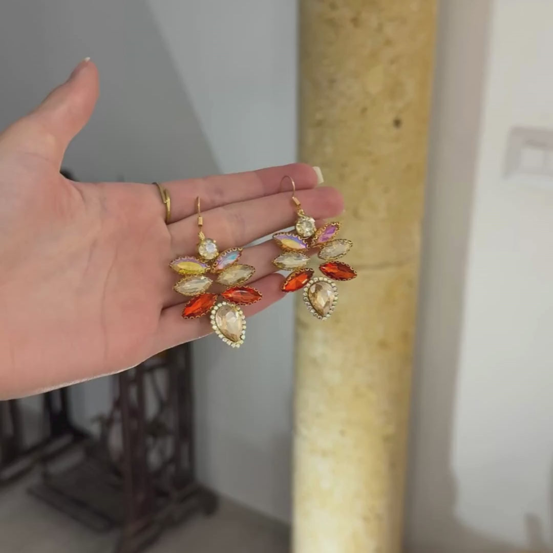 Boucles d’oreilles dorées et orange en strass scintillants