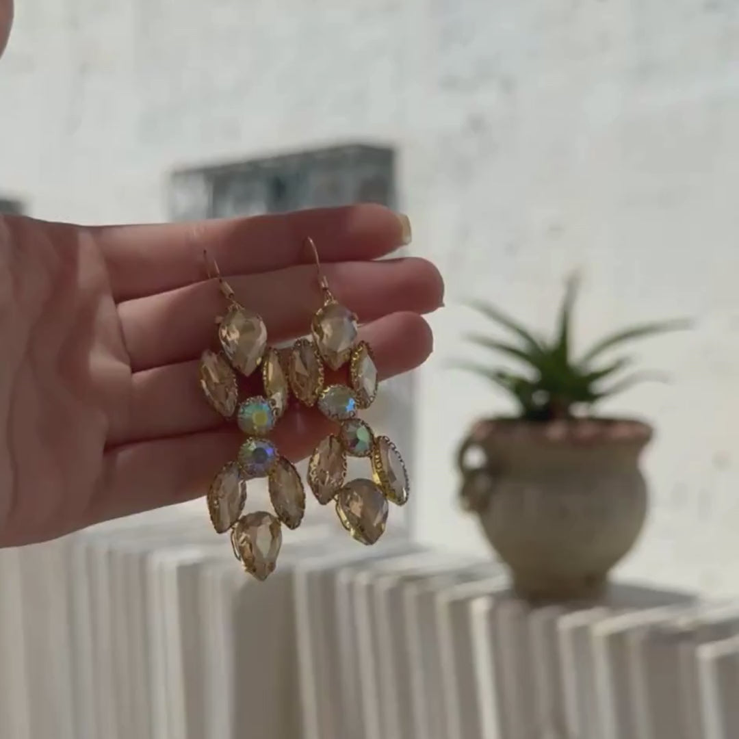Ces boucles d’oreilles artisanales apportent une touche de raffinement et de charme à votre tenue de mariage ou de cérémonie. Leur design finement travaillé, agrémenté de cristaux et de perles délicats, illumine vos traits et complète parfaitement votre look.
