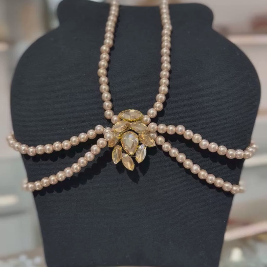 Collier de mariage en perles et strass dorés – Accessoire glamour