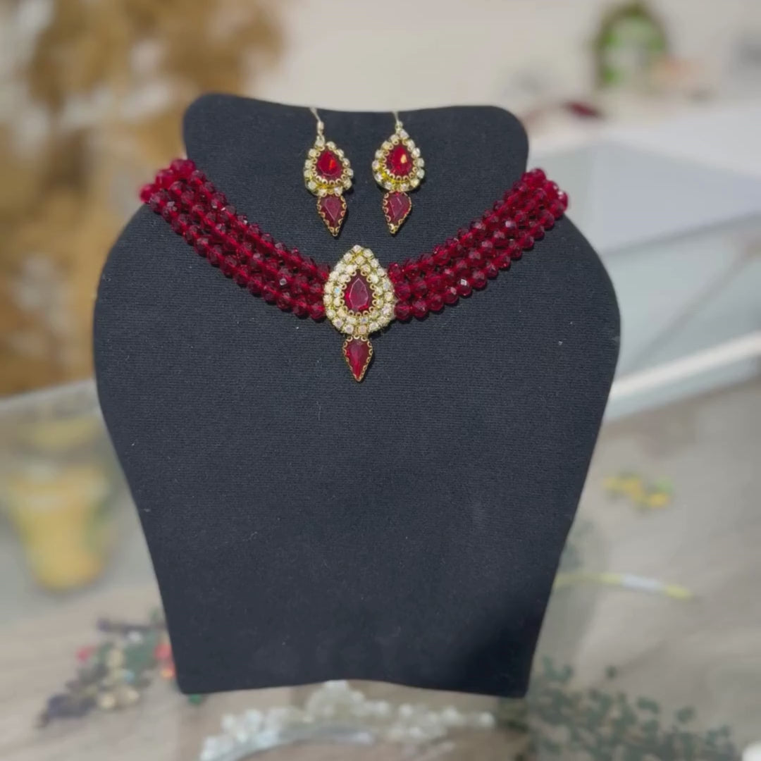 Collier de mariage en perles et strass dorés Accessoire glamour rouge