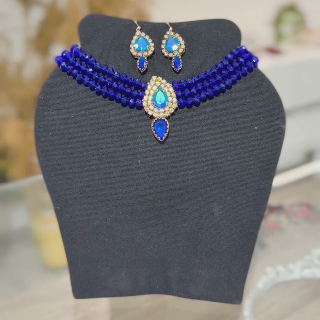Collier et boucles d’oreilles étoile dorée pour cérémonie bleu roi