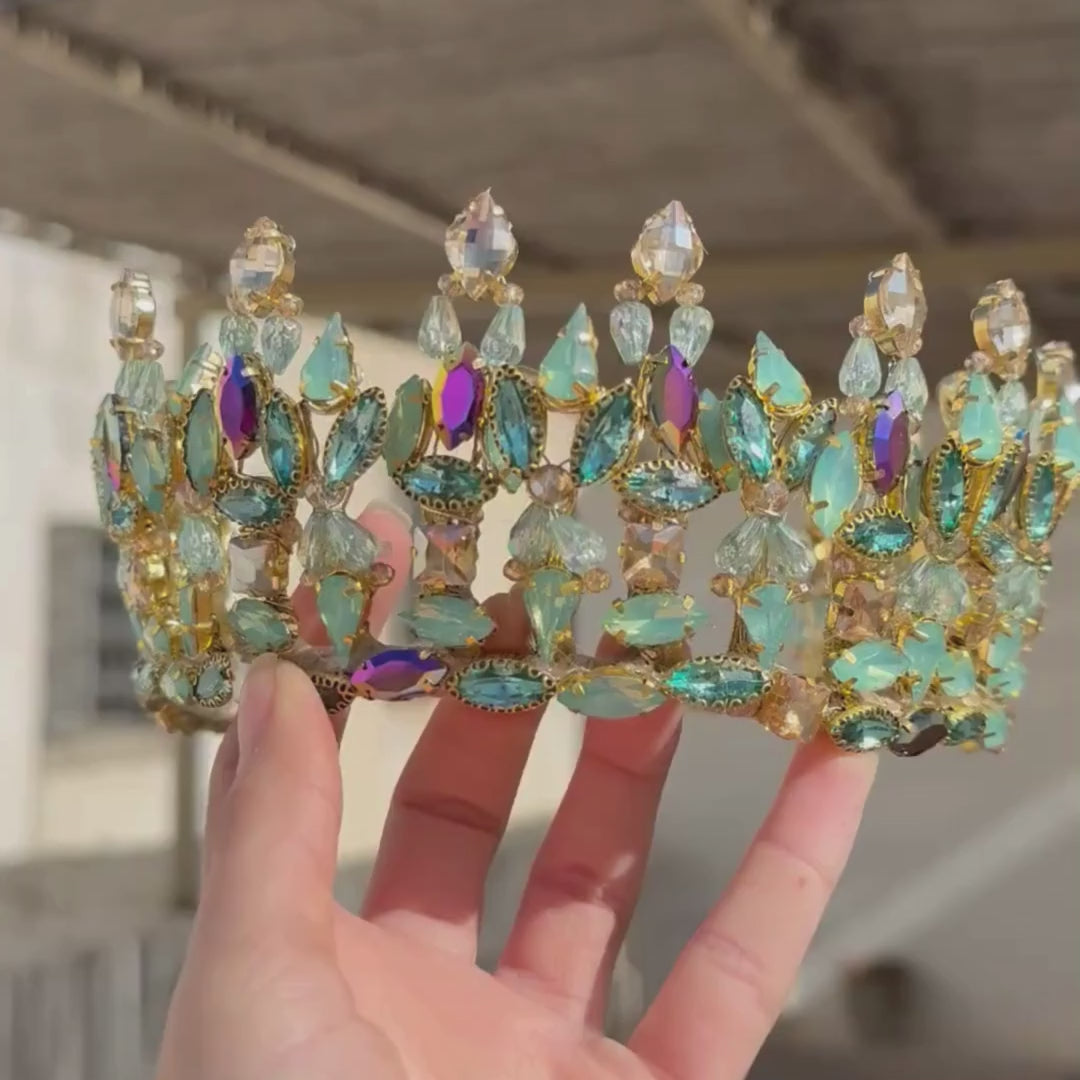 Couronne de mariage en cristaux bleu et or – Accessoire royal