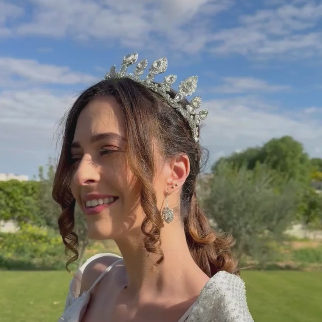 Parfait pour les mariages, ce diadème est à la fois léger et confortable, offrant une tenue parfaite tout au long de la journée ou de la soirée. Ses cristaux, minutieusement taillés, ajoutent une touche de glamour à toute coiffure, qu’elle soit relevée ou lâchée.
