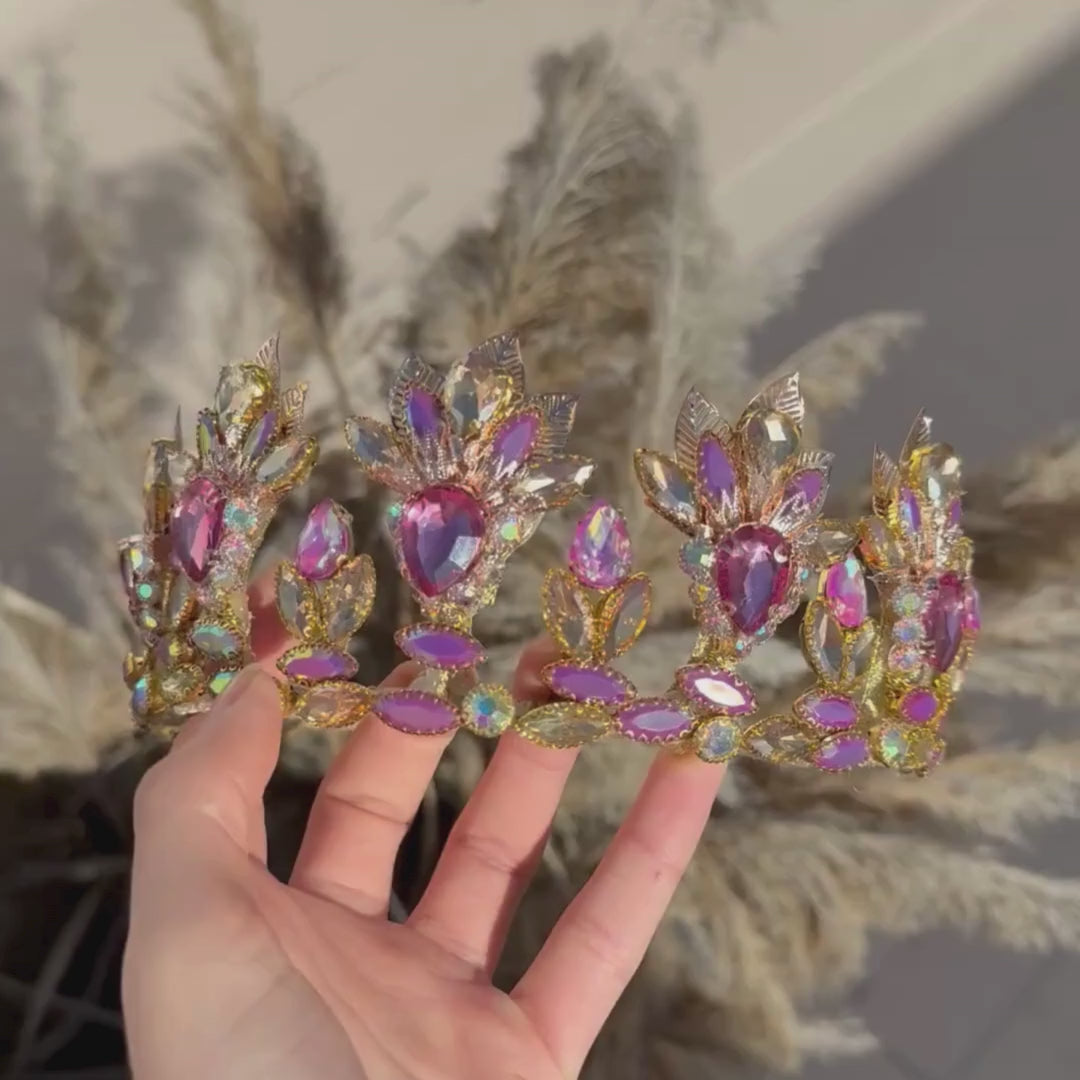 Couronne mariage rose et or – Diadème strass luxe