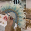 Éventail de mariage bleu avec plumes et strass – Accessoire élégant pour mariée
