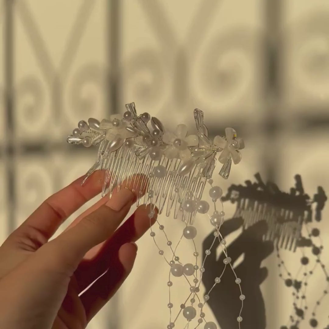 Peigne de Mariage Perles et Fleurs Blanches - Accessoire Cheveux Élégant
