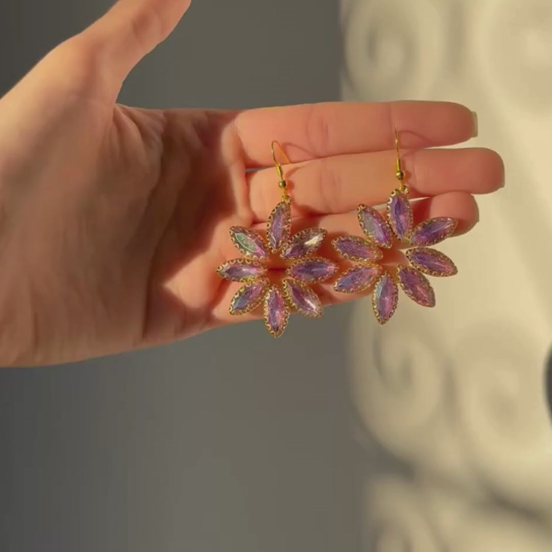Boucles d'oreilles scintillantes avec design floral en strass violet