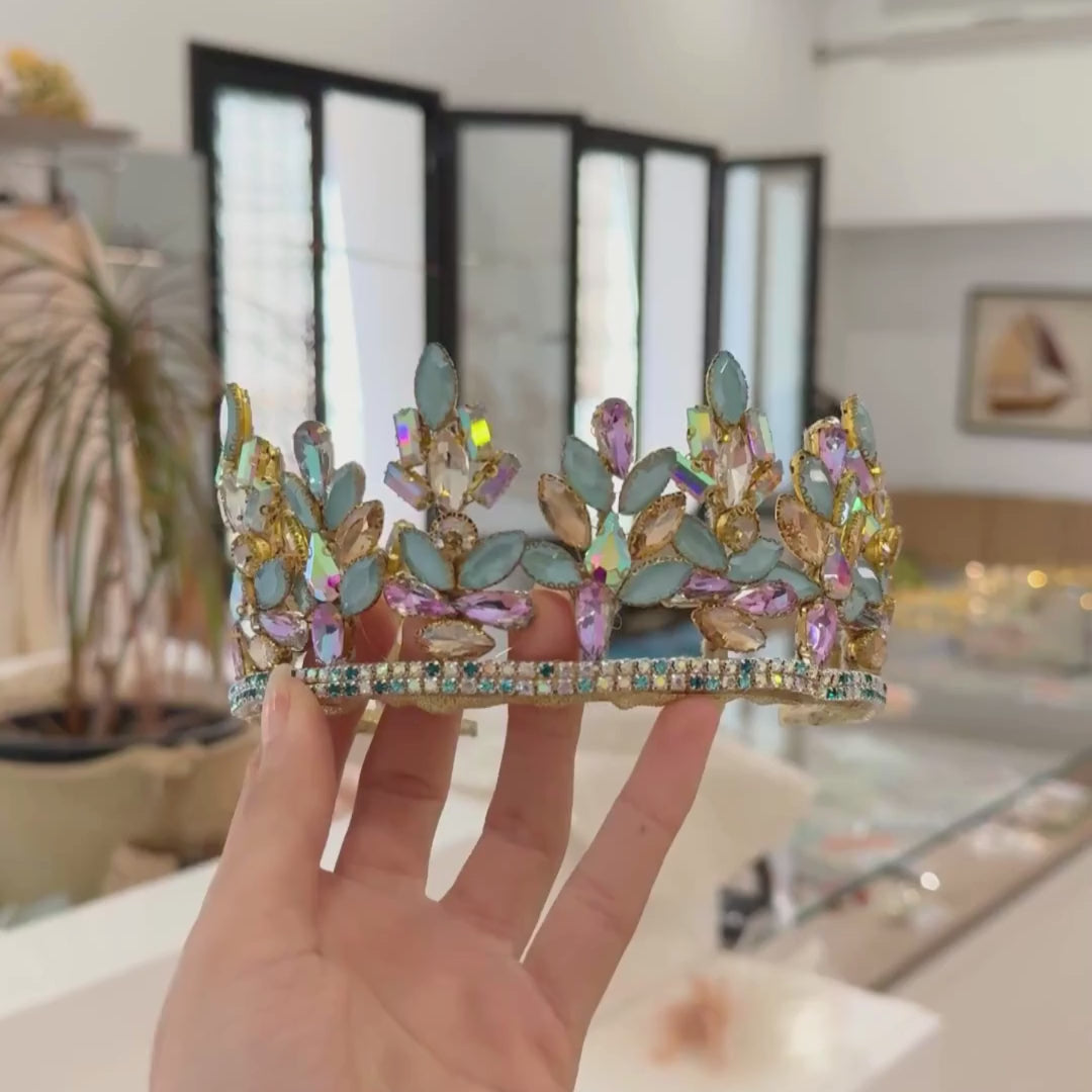 Couronne artisanale en cristaux bleu et lilas