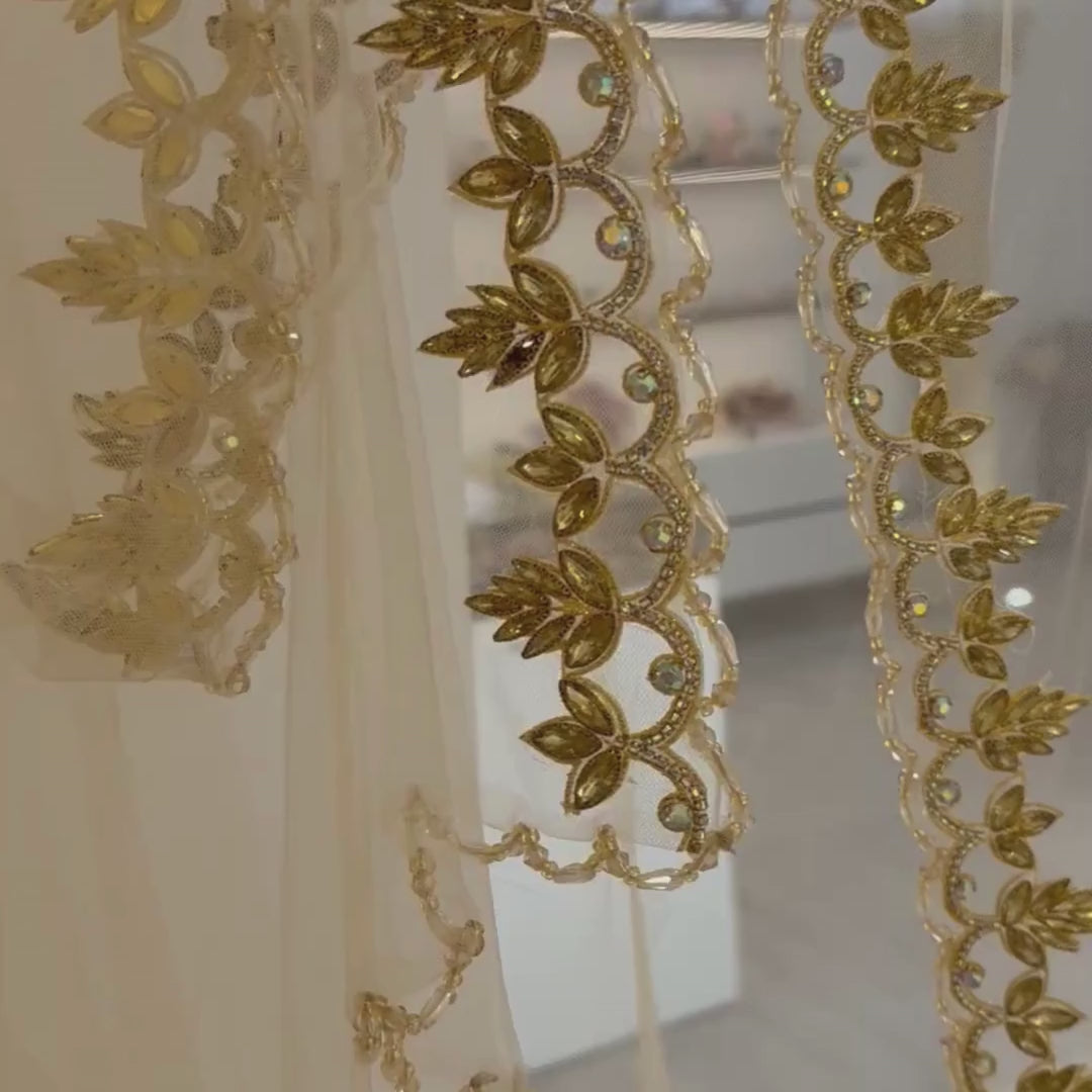 Voile de mariée doré avec perles et strass – Accessoire élégant pour mariage